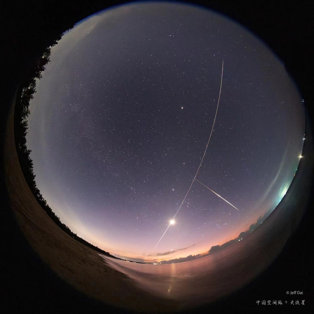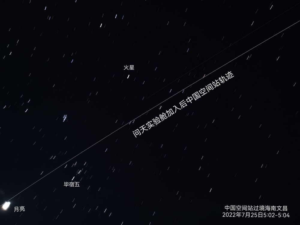 2022年7月25日凌晨,在问天实验舱和天和核心舱组合体完成交会对接后,中国空间站过境文昌。沈京玲 摄