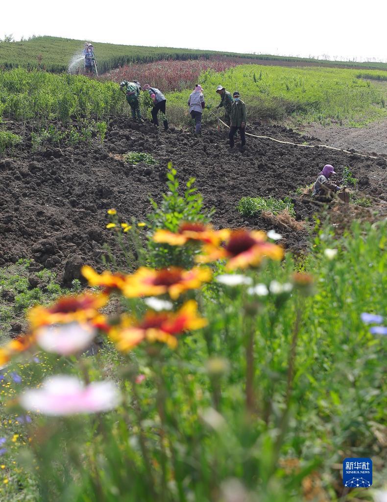 2022年6月2日,工人在辽宁抚顺西露天矿内植树。新华社记者 杨青摄