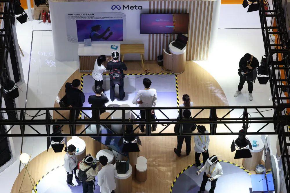 11月5日,参观者在第五届进博会人工智能专区体验“元宇宙”应用。
