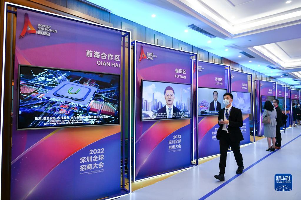 12月9日,2022深圳全球招商大会现场展示深圳各区招商视频。新华社记者 梁旭 摄