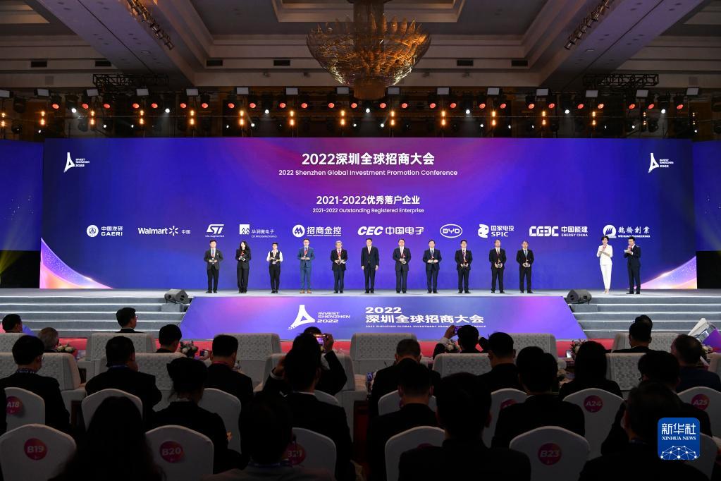 12月9日,2022深圳全球招商大会现场为优秀落户企业颁牌。新华社记者 梁旭 摄