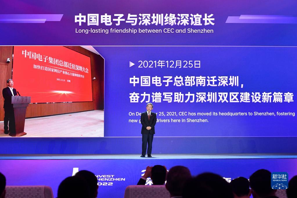 12月9日,在2022深圳全球招商大会上,中国电子信息产业集团有限公司董事长曾毅进行演讲。新华社记者 梁旭 摄