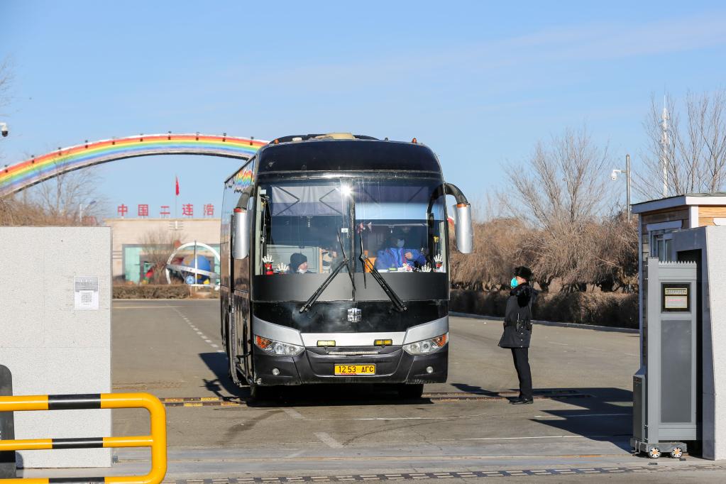 1月8日,二连浩特出入境边防检查站执勤民警检查验放国际客运班车。