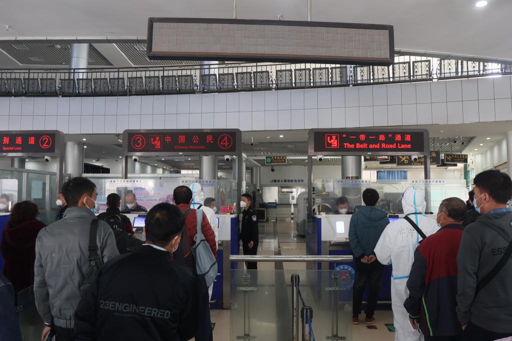 1月8日,磨憨边检站民警对入境人员进行查验。