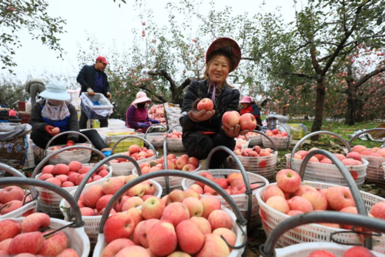 △“苹果之乡”陕西延安洛川,苹果喜获丰收。
