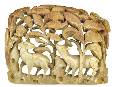 金代双鹿柞树纹玉饰。天津博物馆供图