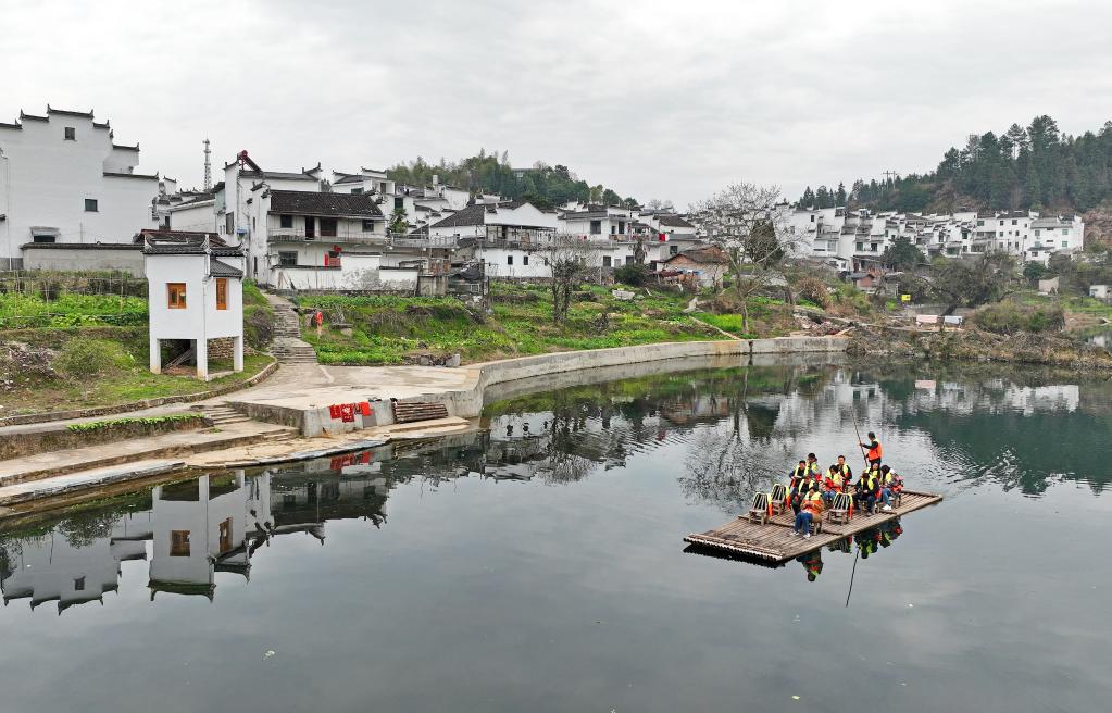 游客在江西省婺源县清华镇乘竹筏游览(3月3日摄)。新华社记者万象 摄