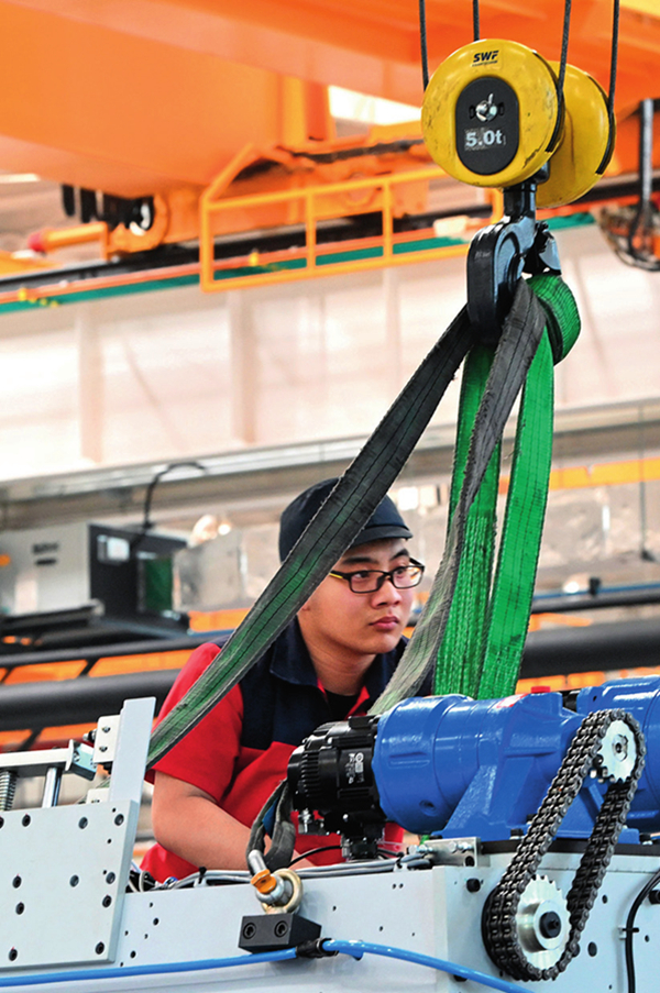 企业员工在天津长荣科技集团股份有限公司生产专区内工作(2023年4月18日摄)李然摄/本刊