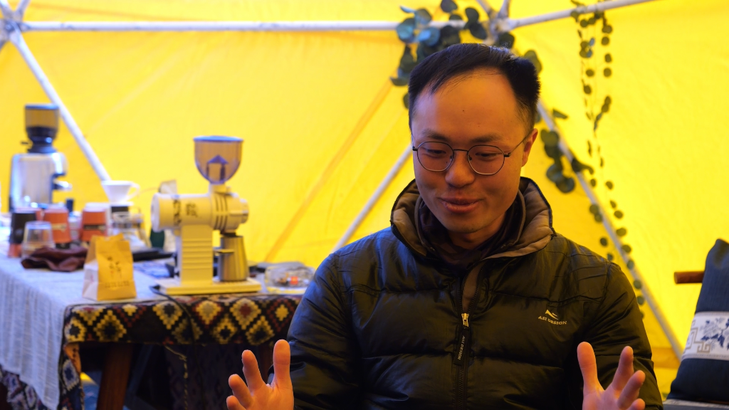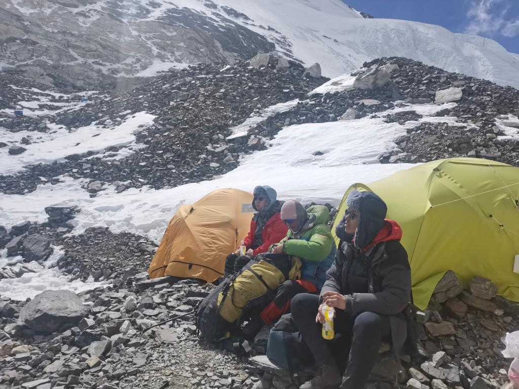 中国科学院古脊椎动物与古人类研究所副研究员王维在珠峰大本营接受新华社采访。采访对象供图。