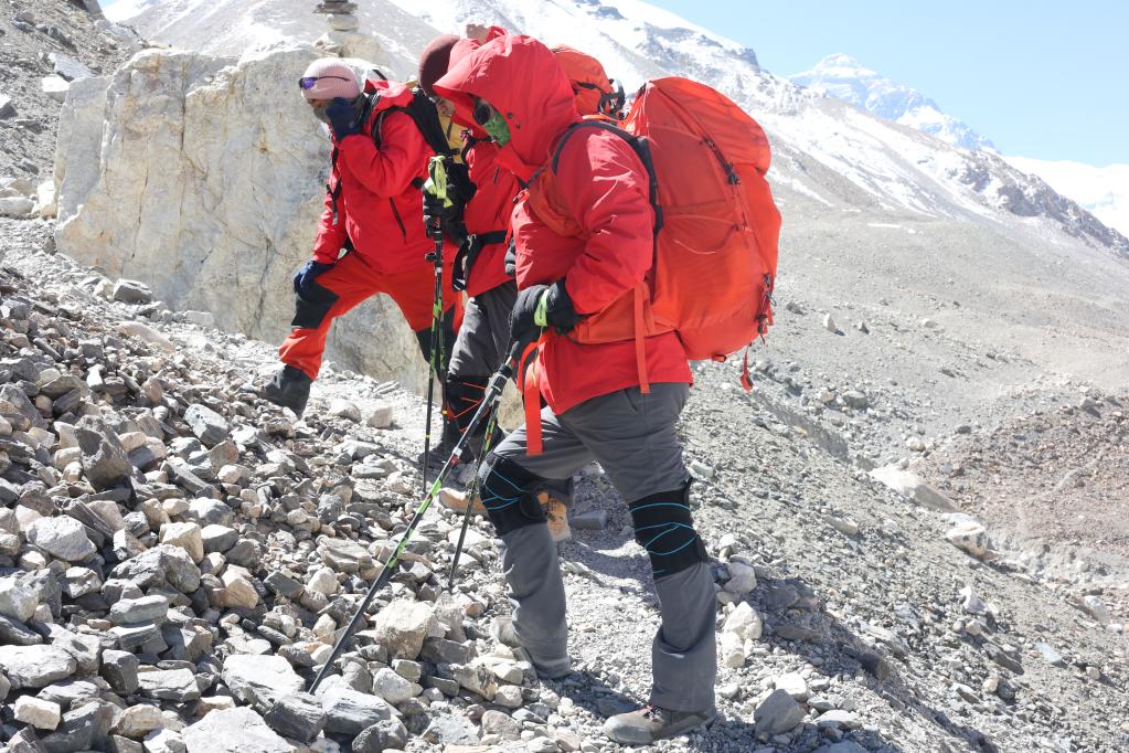 科考队员王维(右一)与队友在珠峰地区进行野外科学考察活动。采访对象供图。