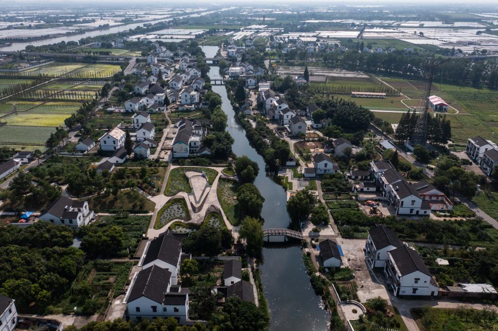 空中俯瞰嘉善美丽乡村。新华社记者徐昱 摄