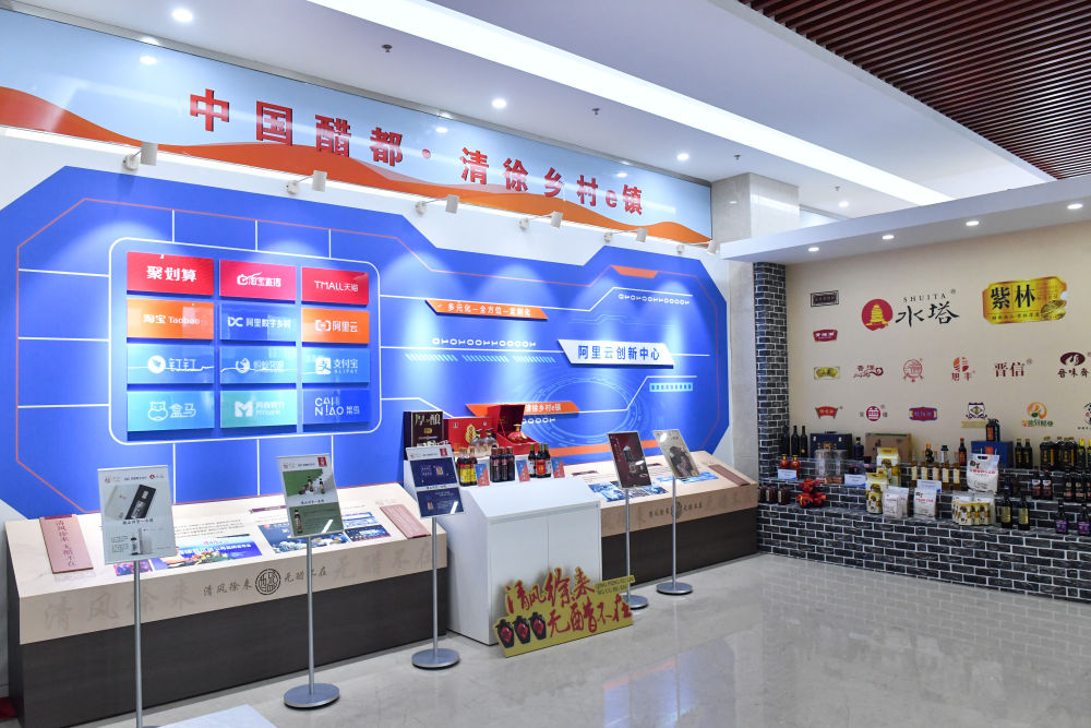 这是“清徐乡村e镇”的展示台(7月11日摄)。新华社记者 柴婷 摄