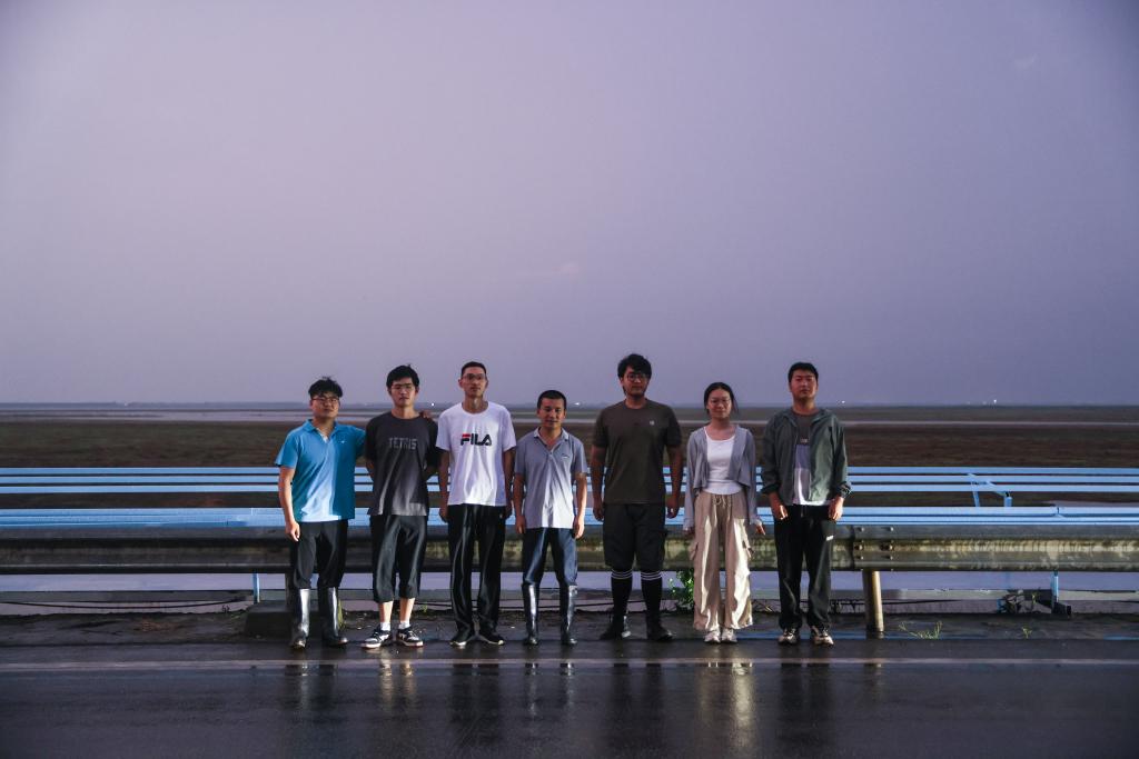 ↑7月9日,中国科学院洞庭湖湿地生态系统观测研究站科研人员在湖南东洞庭湖国家级自然保护区完成采样工作后留影。