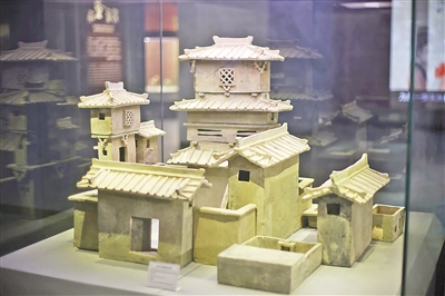 东汉灰陶四合院建筑模型。记者张丹华摄