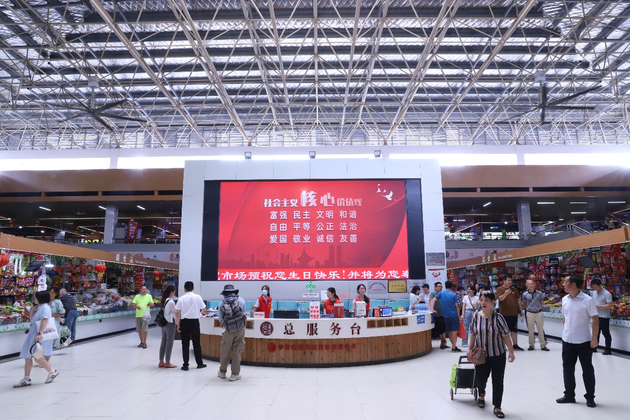 沁园农贸市场是江西省一家五星级智慧农贸市场,也是红谷滩区重点民生项目。通过文明城市创建工作的推动,沁园农贸市场一跃成为红谷滩区“网红”菜场,一改以往脏乱差的环境。