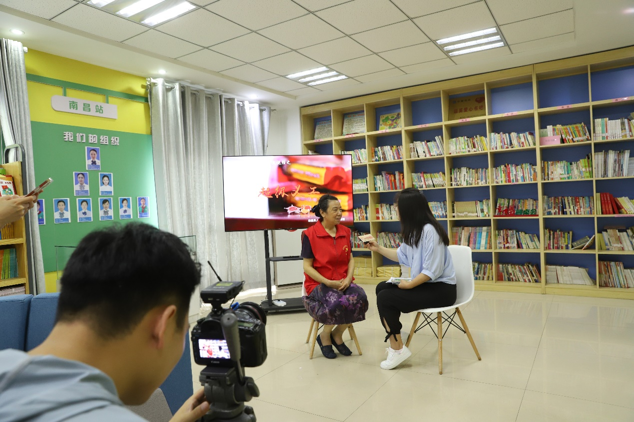 7月19日,志愿者在西湖区新时代文明实践中心照看儿童。(地方媒体供图)