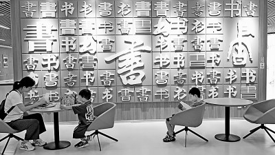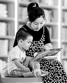 7月24日,家长带孩子在位于呼和浩特市的内蒙古新华书店内阅读书籍。丁根厚摄/光明图片