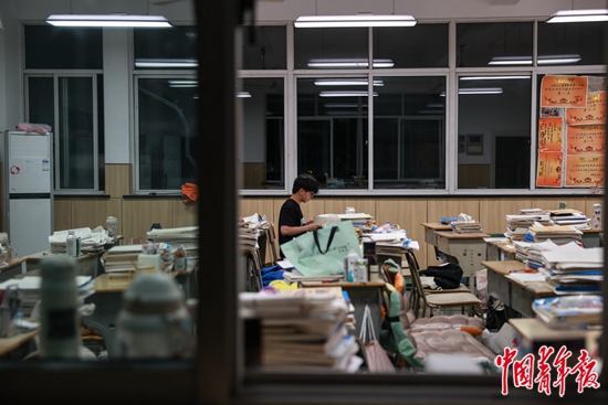 6月3日,浙江诸暨,诸暨职教中心,晚自习结束后,一名高三学生仍留在教室看书。记者 曲俊燕/摄