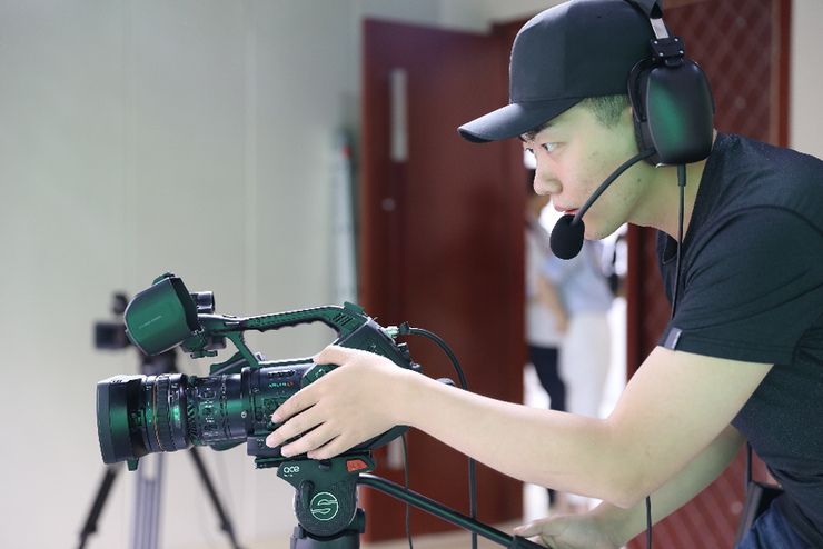 2018年9月,《40人对话40年》访谈录制现场,贺子桓正在调试设备。