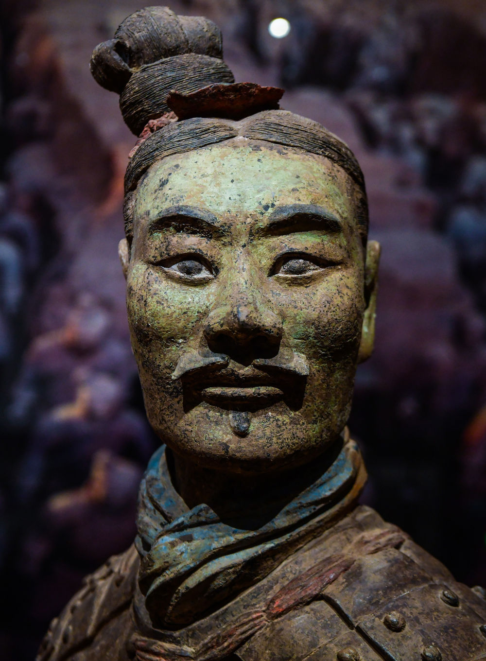 通过化学分析,文物保护修复专家还在秦俑身上发现了一些稀有且珍贵的人工合成颜料,就是以硅酸铜钡为主要成分的“中国蓝”和“中国紫”。这些罕见颜料如何由两千多年前的工匠所掌握,又有何含义,仍有待文物保护修复工作者的持续研究。