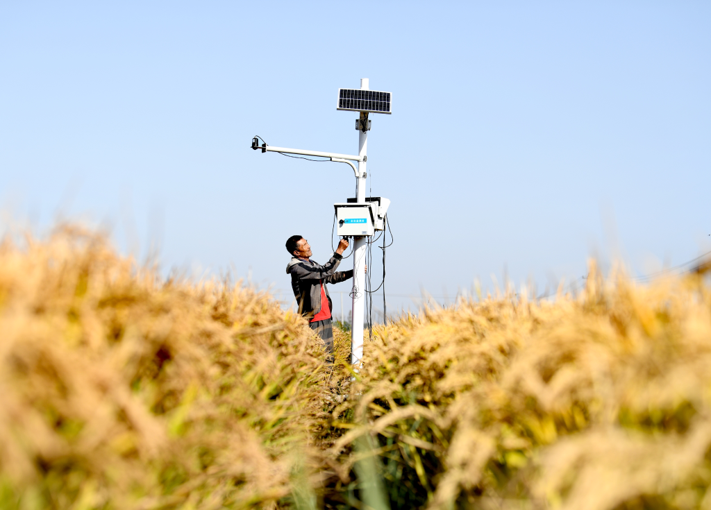 10月15日,乐亭县数字循环现代农业园区内,工作人员在调试监测设备。(受访单位供图)