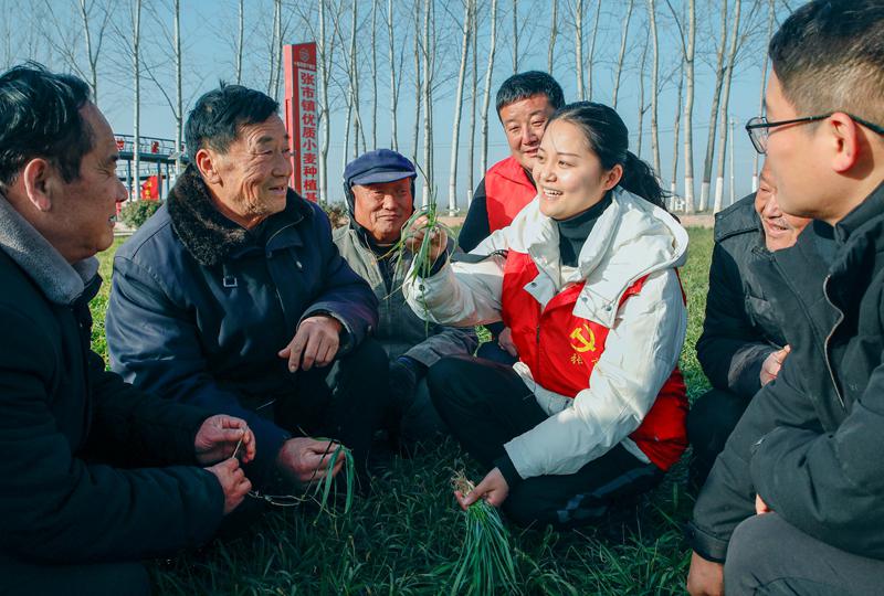 1月6日,尉氏县新时代文明实践中心服务队员向农户讲解“5G+智慧农业”在农业生产中的作用。(开封市文明办供图)
