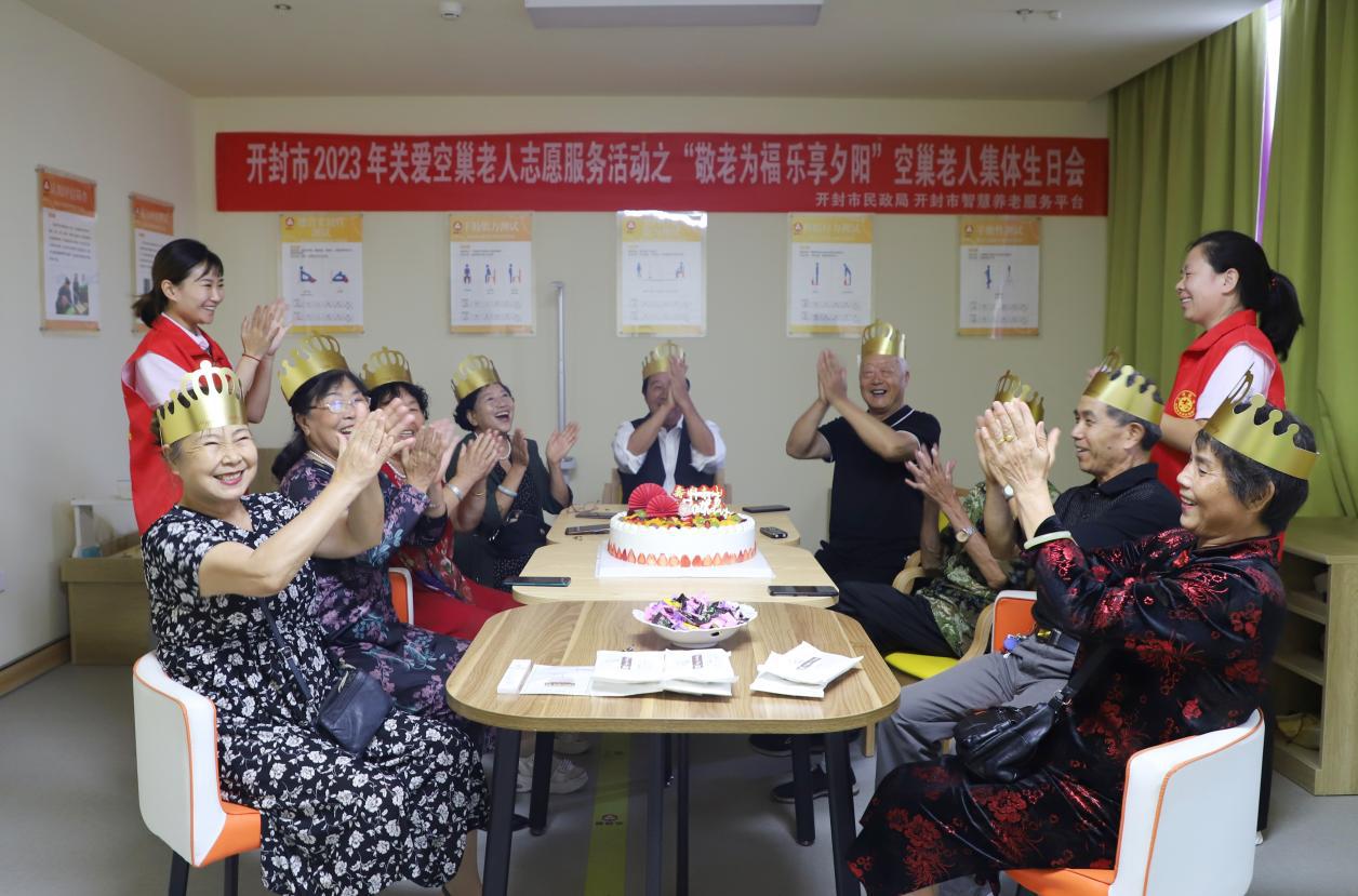 9月21日,开封市民政局开展关爱空巢老人志愿服务活动,为空巢老人举行集体生日会。(开封市文明办供图)