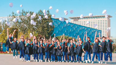 图为“春蕾女童”们在北京“水立方”前的合影。中国儿童少年基金会供图