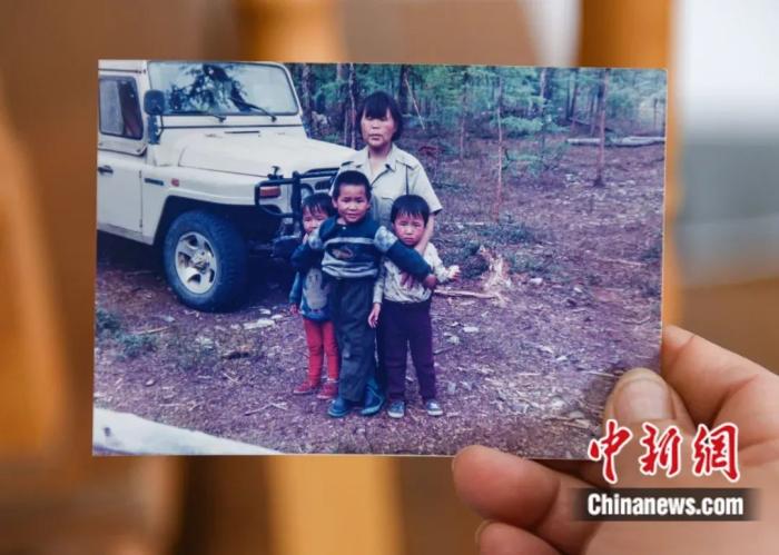1998年夏,时年35岁的柳霞与儿子雨果及乌云、乌兰合影。王伟 摄