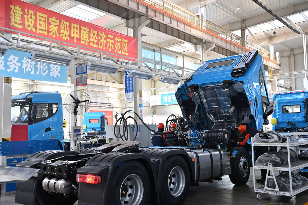 在汾河中游,以甲醇产业为引领,晋中市开启了能源转型的新赛道。走进吉利汽车晋中基地生产车间,一辆辆甲醇重卡、甲醇轿车经过最后检测,缓缓驶出生产线。山西吉利新能源商用车有限公司生产物流部副部长李恒说:“我们从去年6月全省首台甲醇重卡下线以来,已经交付了1200余台,还有上千台订单正在生产。”