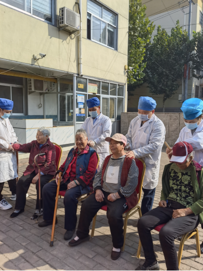 10月24日上午,费县探沂镇王富村社区养老院里,几位老人并排坐着,享受着免费的艾灸治疗,脸上洋溢着幸福的笑容。