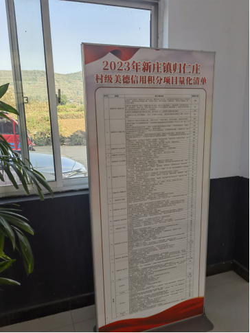 这是10月24日拍摄的2023年新庄镇归仁庄村级美德信用积分项目量化清单。新华网 韩建平 摄