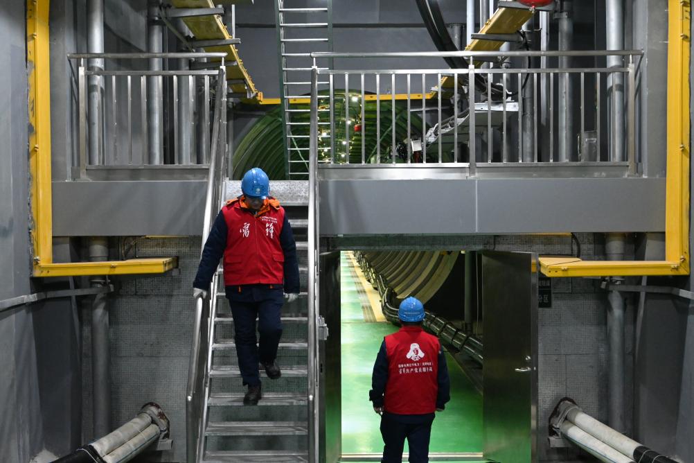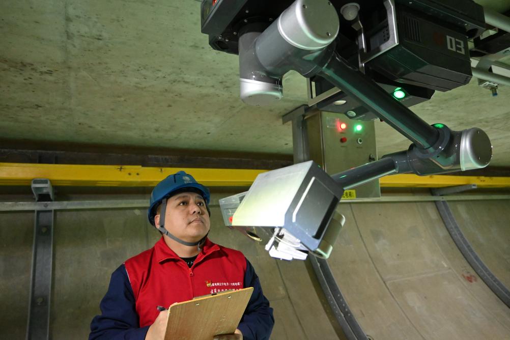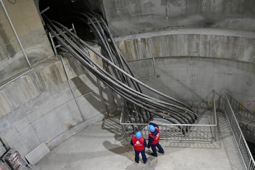 工作人员在电缆隧道内巡检。新华社记者刘艺淳 摄