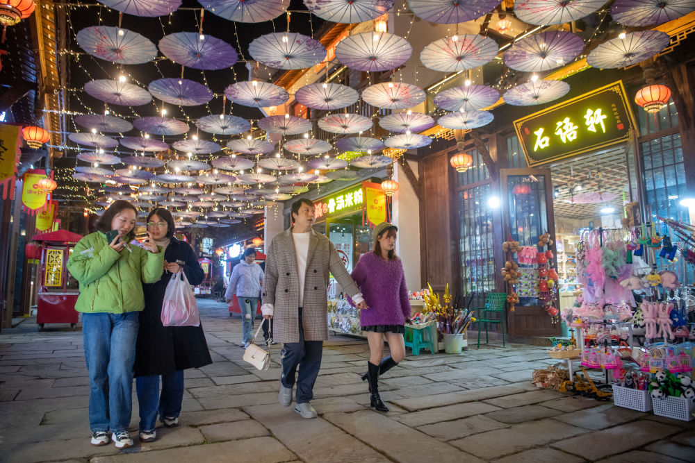 游客在万州天生城文旅街区参观游览(2023年11月27日摄)。新华每日电讯记者 唐奕 摄