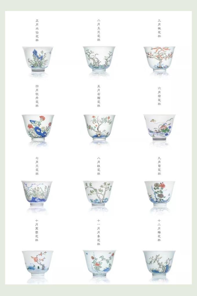 清康熙“五彩十二月花卉杯”。河南博物院藏