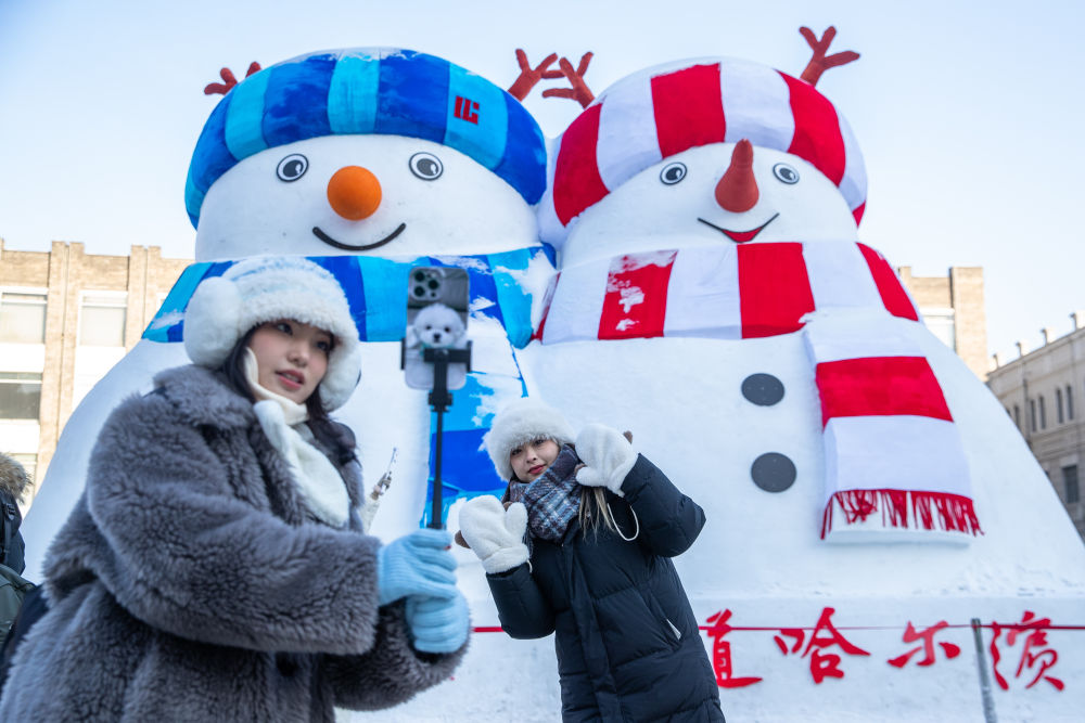 冰雪大世界里,大滑梯上的欢呼尖叫一阵接一阵;太阳岛雪博会园区雪雕林立,游客沐浴在洁白世界的浪漫中;在中央大街、索菲亚大教堂,打扮靓丽的“公主”忙着旅拍,圆一个冰雪奇缘梦。