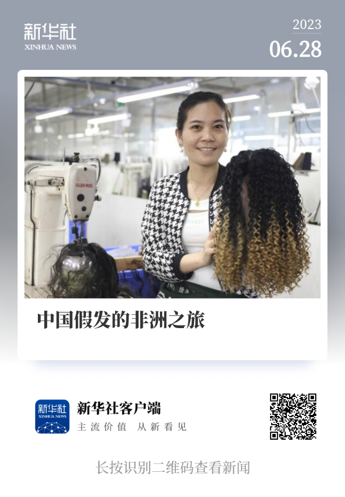 在湖南邵阳,工厂里生产的设计多变、物美价廉的假发出口到非洲,便是当地女性喜爱的时尚单品。