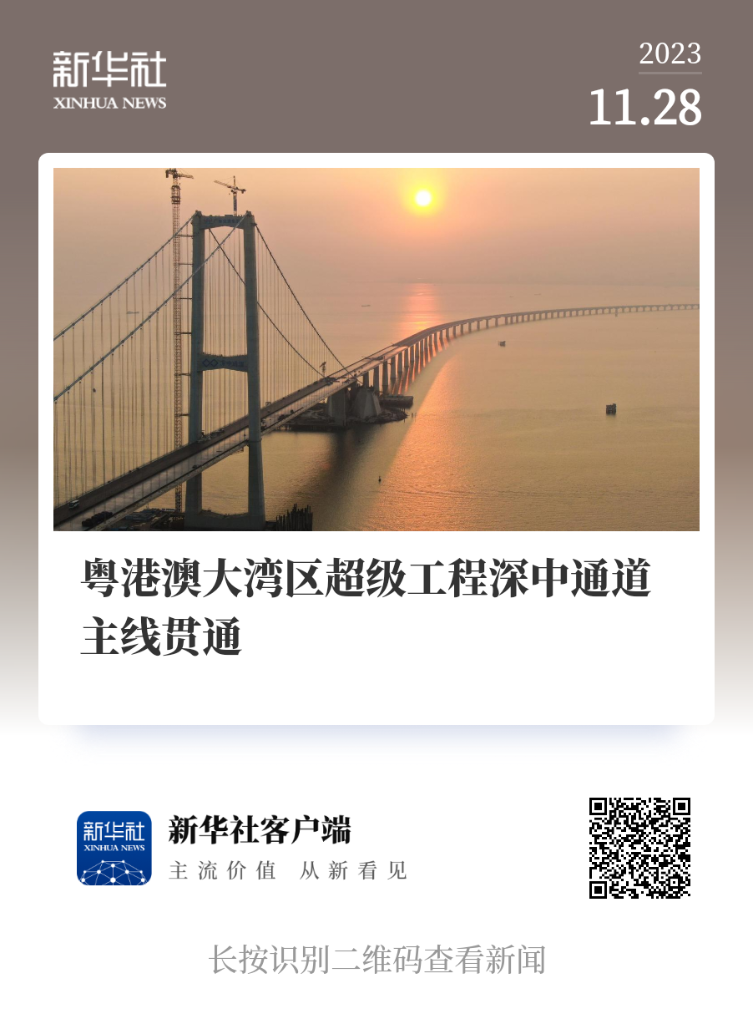 这是2023年11月28日拍摄的深中通道伶仃洋大桥。