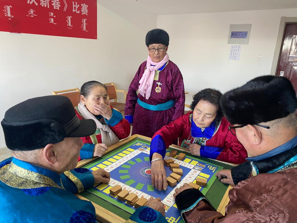 牧民们正在玩传统棋牌游戏。(受访者供图)