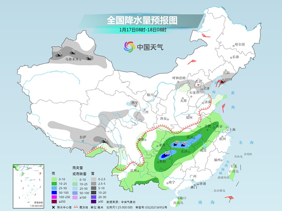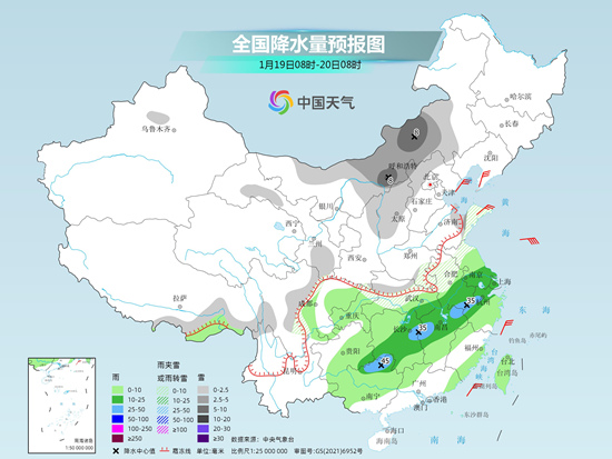 未来三天(1月17日至19日),中东部大范围雨雪仍在持续,其中西南地区东部、江汉、江淮等地雨势较强,局地或有暴雨。气温方面,今天中东部大部气温还将继续回升,尤其是江南南部等地最高气温可达20℃或以上,暖意融融,不过明天起,冷空气将给各地陆续带来降温,本周末中东部将上演冷暖大逆转。