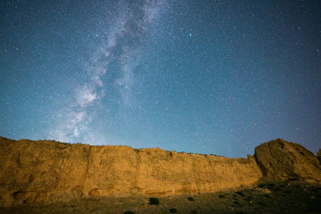 “玉塞抵长城,金徽映高阙”。在贺兰山拍摄明长城时,风从险峻的峡谷内呼啸而过,拍打在长城或土夯或石垒的墙壁上。夜空下,黄色的敌台分外鲜明,在穹庐下好似直抵霄汉。