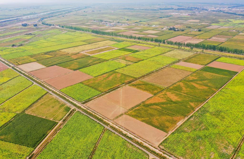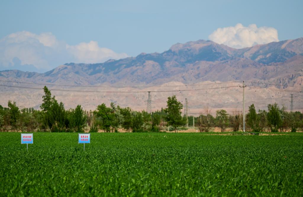 这是内蒙古巴彦淖尔市乌拉特前旗现代农业示范园区的示范田(2023年6月5日摄)。