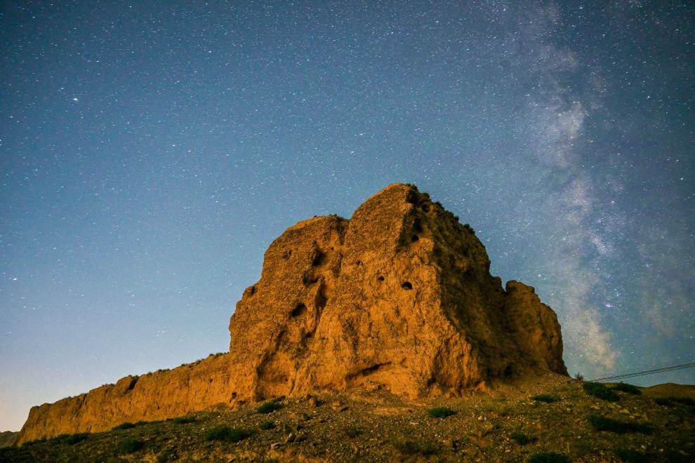 星空下的赤木口长城敌台(2023年8月20日拍摄)。