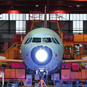 空客天津总装线的首架空客A321飞机上线总装(2022年11月9日摄) 赵子硕摄/本刊