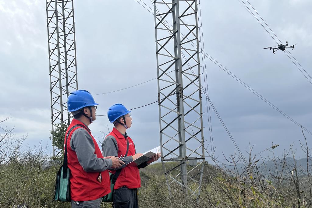 2月1日,在湖南省郴州市宜章县杨梅山镇220千伏福外Ⅰ线南山岭观冰哨,国网郴州供电公司输电检修二班正在为应对雨雪天气做准备工作。新华社发(李慧林摄)