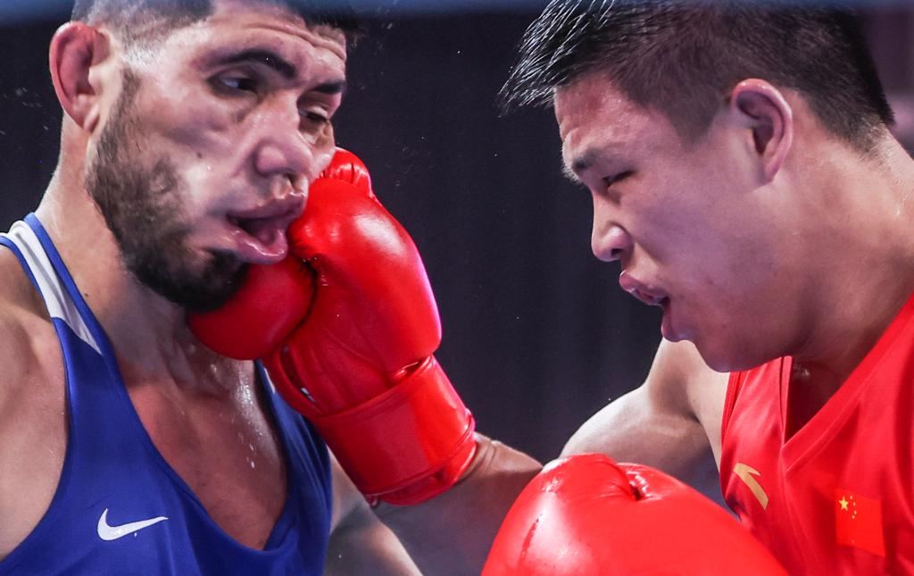 由于亚运项目众多,我选择了一些自己感兴趣但平常不太容易拍到的项目,比如:拳击。国际赛事每个场馆每场比赛都会设置内场摄影位,新华社由于其IOPP(国际奥林匹克摄影队)的身份会自动获得一个内场席位,这也是拍摄更有冲击力画面的有利条件。