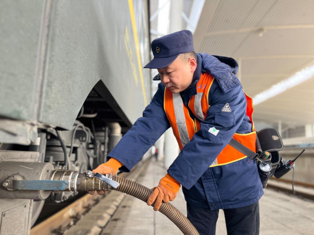 作为山西境内唯一的通过车吸污作业点,太原南站吸污作业点全年无休,承担着通过太原南站的普速、动车、高铁的吸污作业。春运期间,吸污工作量加大,除去临时加增的吸污作业任务,每天从早上7点至夜间12点,固定有14辆列车需要进行吸污作业。