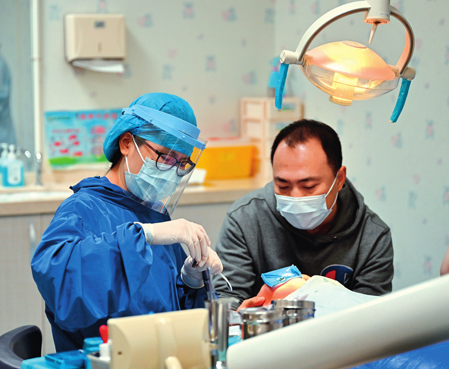 在北京儿童医院保定医院口腔诊室,来自北京的专家正在给患儿诊治(2024年2月1日摄) 牟宇摄/本刊