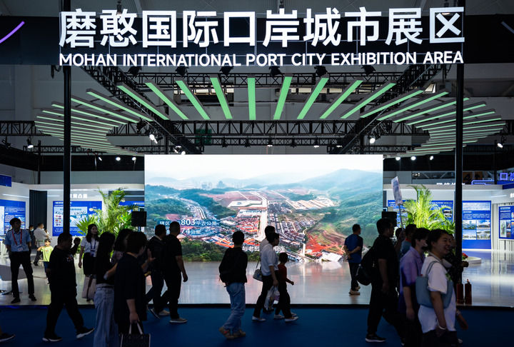 这是第七届中国—南亚博览会口岸经济馆磨憨国际口岸城市展区(2023年8月20日摄)。新华社记者 陈欣波 摄