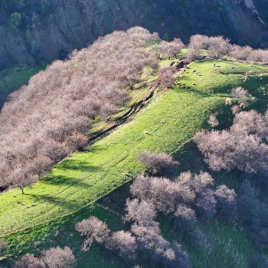 这是4月20日在新源县拍摄的野杏林(无人机照片)。新华社记者 李响 摄
